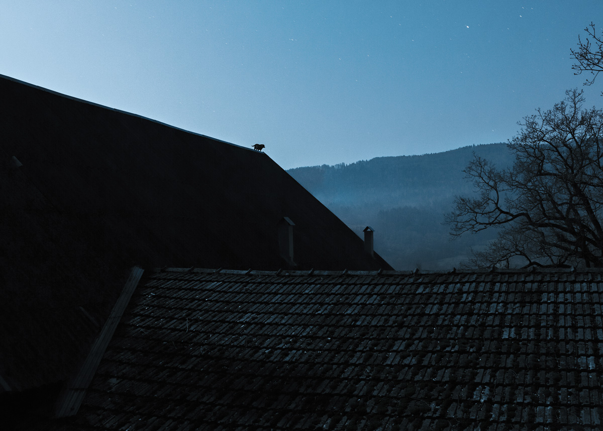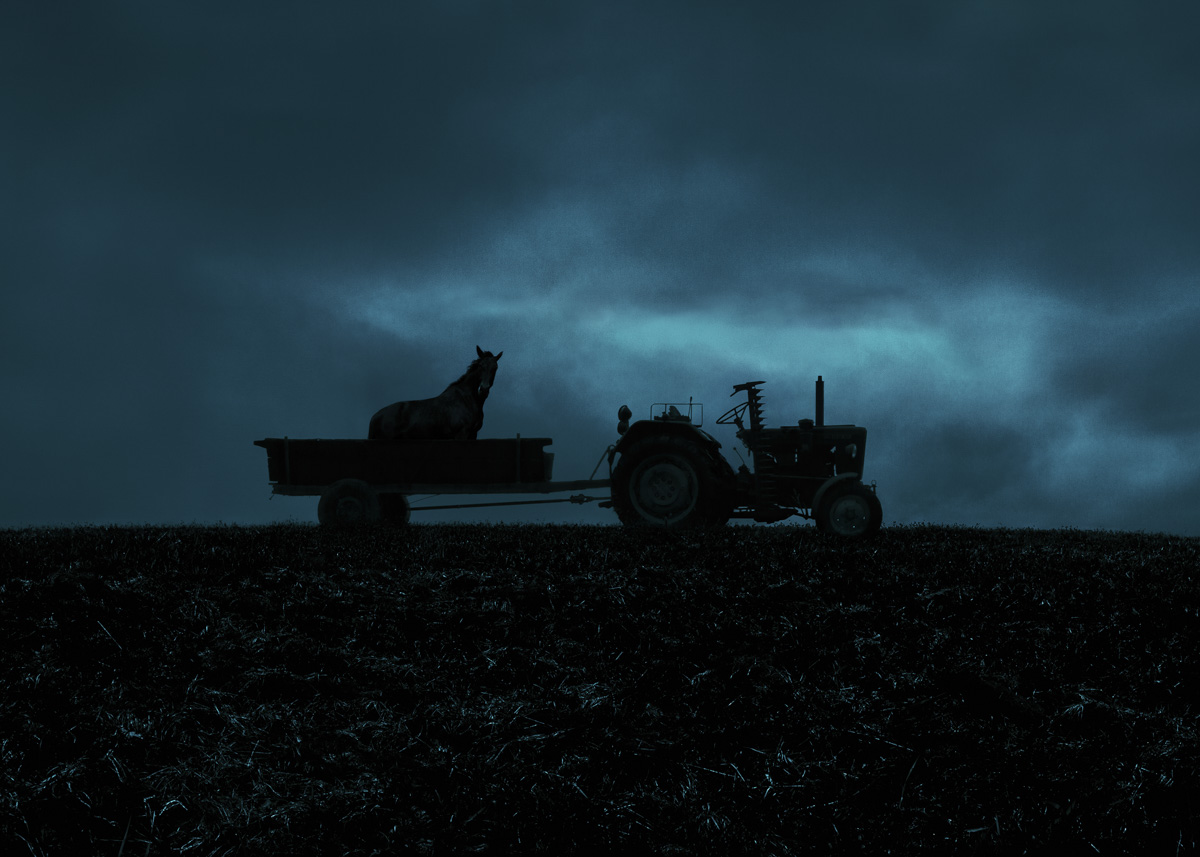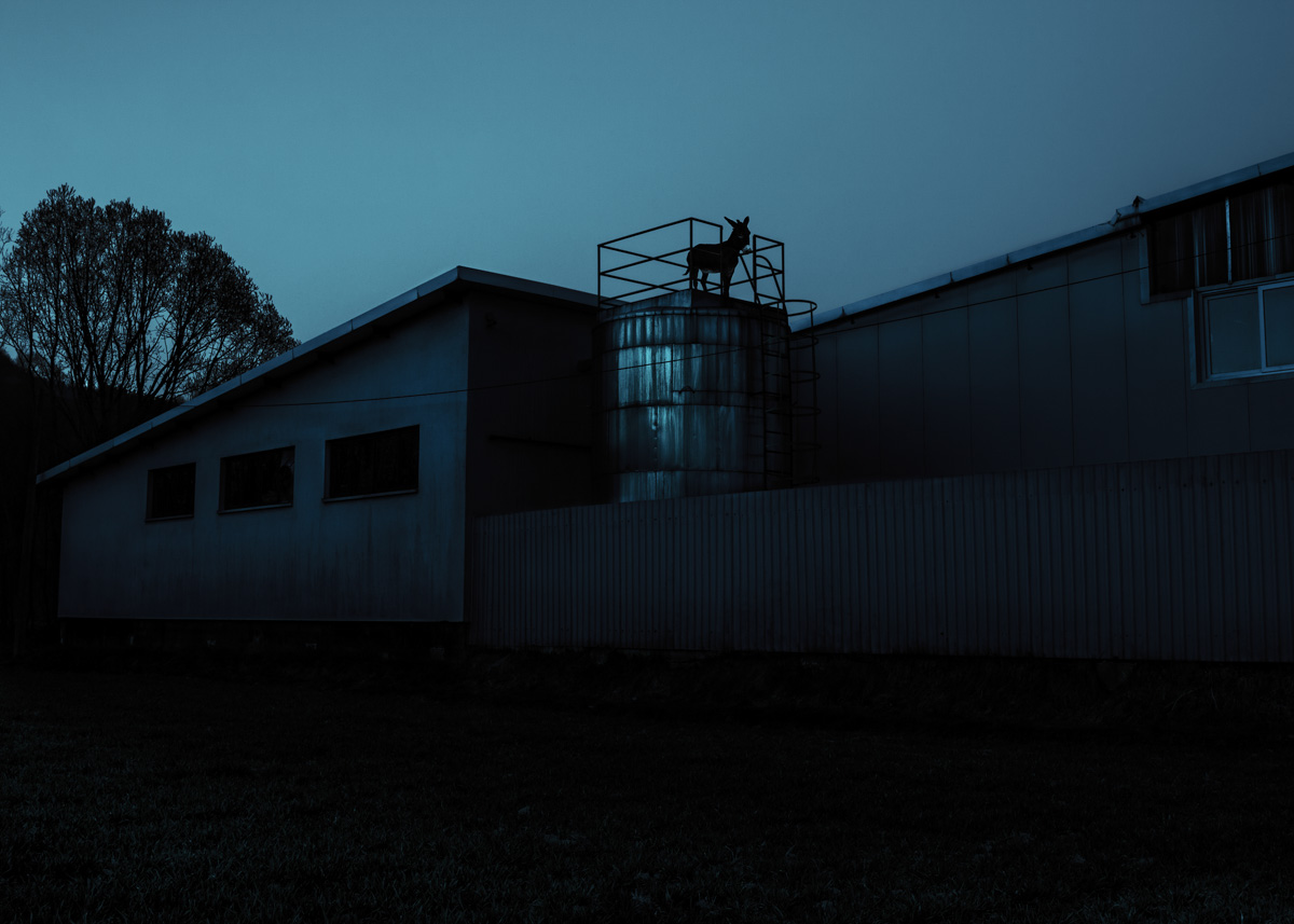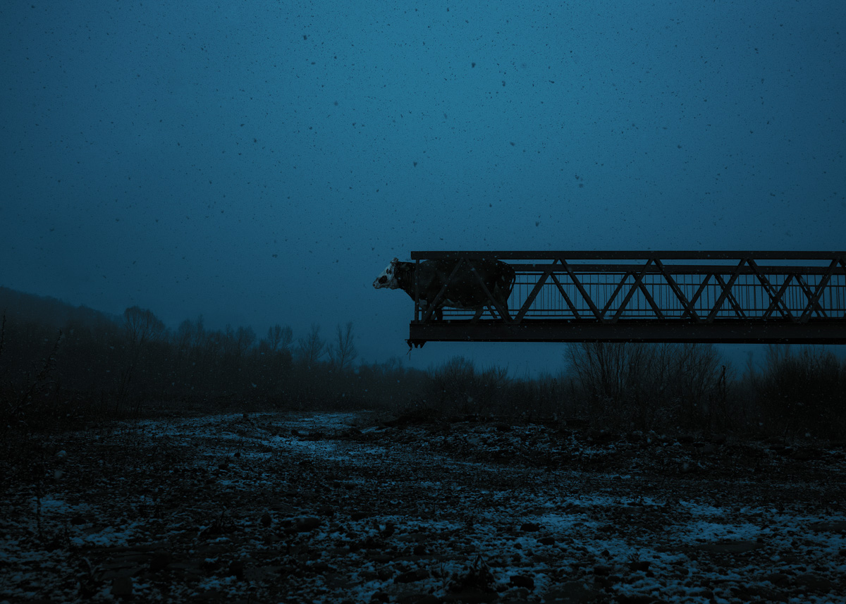 Some of these animals I actually photographed in places where they stuck in these pictures. The rest was reassembled from my old, archived photographs and placed into traumatic scenery near our farm. It was the only possibility. These animals are no longer alive and I wanted to tell their stories. Their fates show the transformation that takes place on our farm, in the whole village and in our minds.