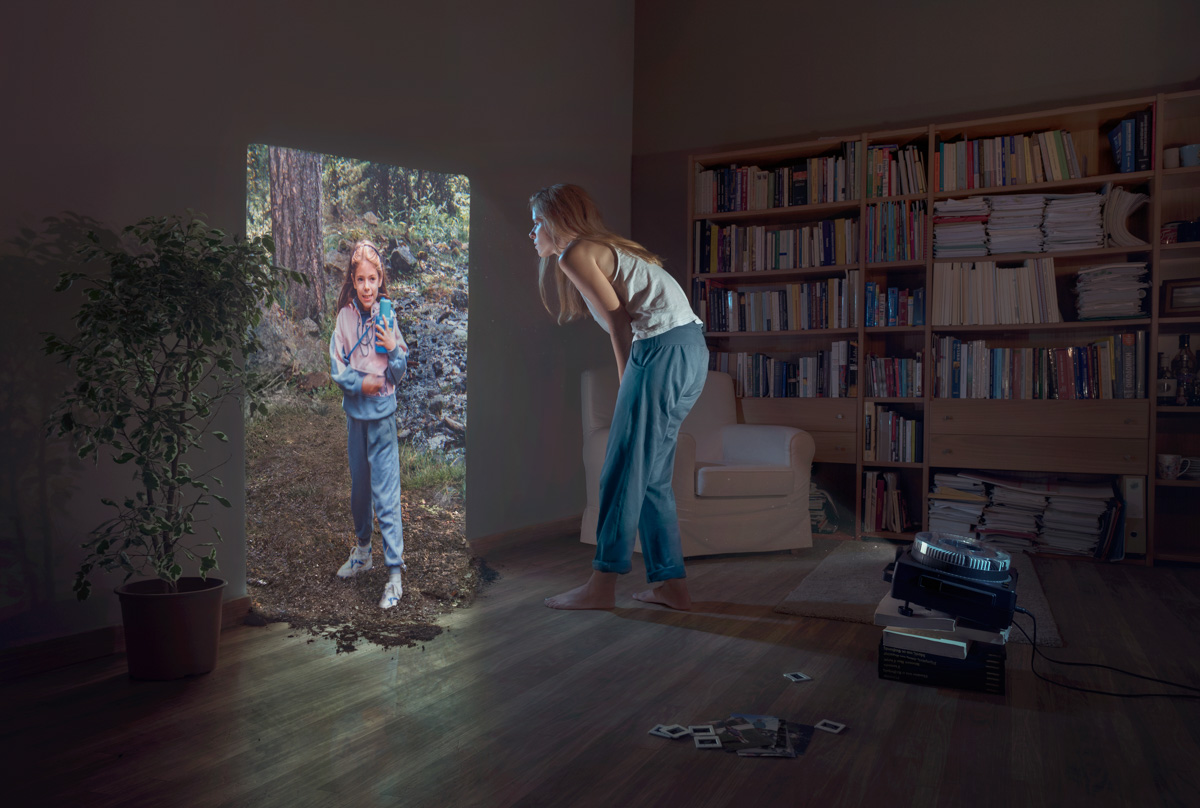 Description: In my images I present myself in exaggerated situations, unreal for the the human eye but real for what is going on inside me. Choosing to finally respect my natural love for imagination and dreams, I felt the need to share and speak about some of my mind's exaggerations. While self-portraiting, I wanted to let more than a female figure and her background be visible. I let images of my imagination free and visible around my personal environment aiming to understand, underline and secure their value.