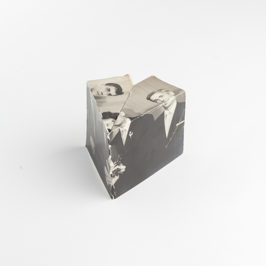 Description: Photographs used in this project come from an album of an unknown Yugoslavian family. By taking a single specimen from the social system, a civilian family, and with gestures of folding, piercing and overlapping it's intended to elevate its private to the status of public, in the form of a monument. This kind of connection imposes a contrast between the singular nature of family photographs and the plurality of public, massive, collective signifiers of social values. Two ends find its parallel in the moment these photographs were made, when their recording and archiving was closer to a ceremony or a ritual; and the culture of monuments, very popular in the ex-Yugoslavia, by which collective tributes were given to people as an anonymous group. In that way these photo-objects function as miniature memorials to an unknown, universal citizen. By thematic selection they glorify everyday events of his private history and the basic purpose of photography - recording the past, and in representation they critique the practice reserved for cases of great importance. Terms like past, history and memory are questioned through this work with juxtaposition of micro and macro narratives from one vanished social reality.